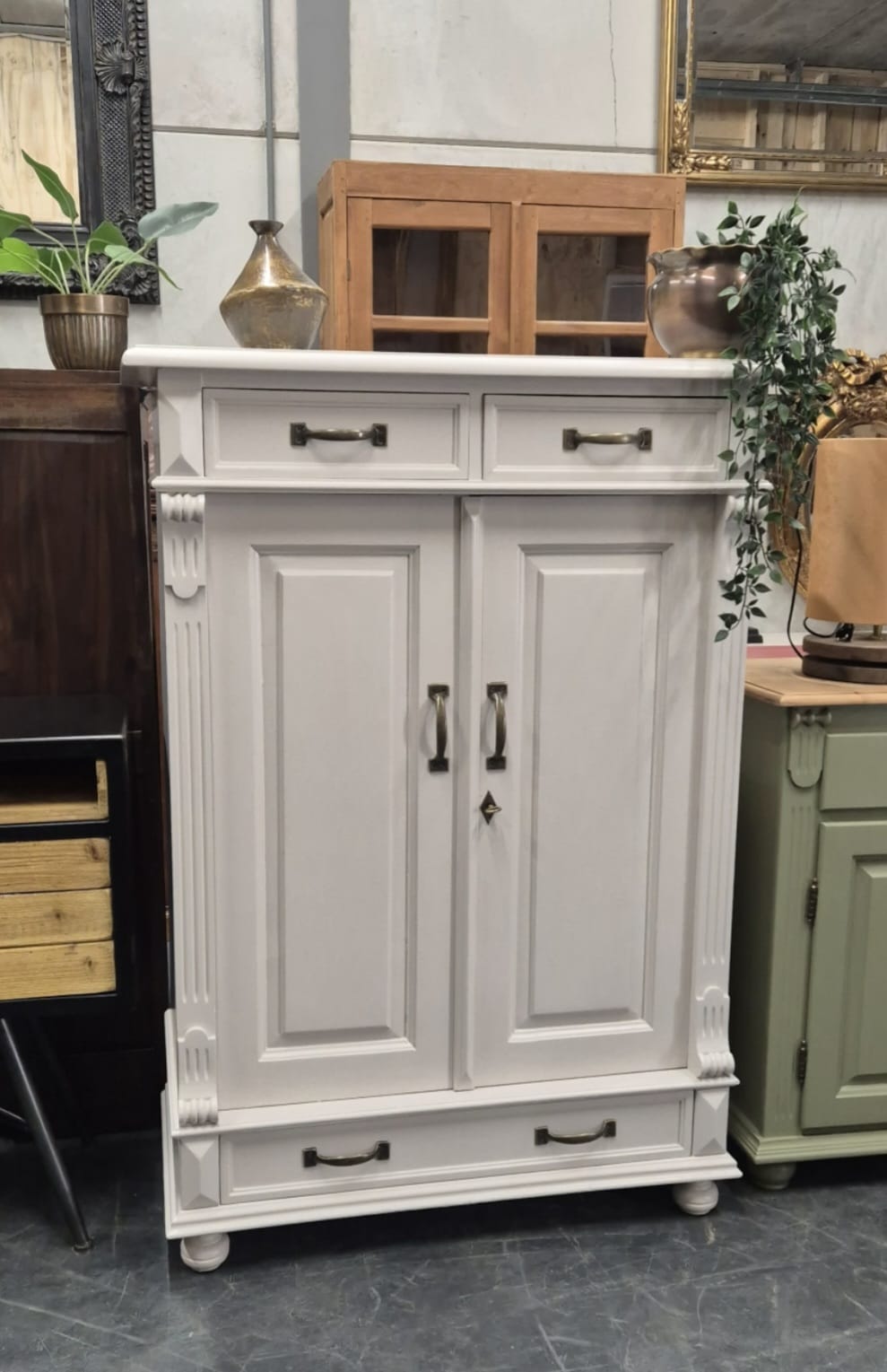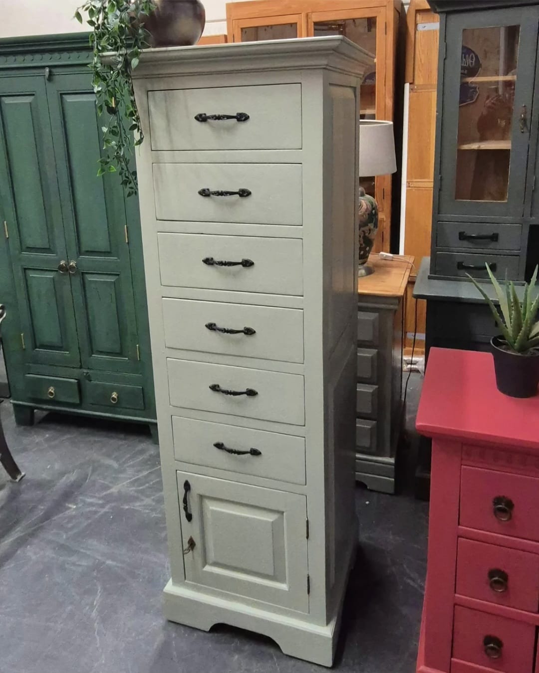 Bij Sjoege Meubels geven we gebruikte kasten een tweede leven. Elke kast wordt met zorg opgeknapt, geverfd en soms voorzien van nieuwe grepen of een fris stalen onderstel. Het resultaat? Een kast met karakter – duurzaam, stijlvol en helemaal klaar voor een nieuw interieur. Sommige kasten houden we in hun originele stijl, andere krijgen een volledige restyle. Heb je zelf een voorkeur voor kleur of afwerking? Laat het ons weten – veel van onze kasten kunnen nog worden aangepast naar wens. Zie hieronder onze collectie.