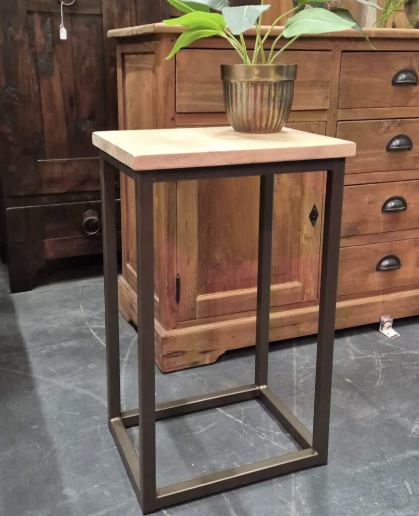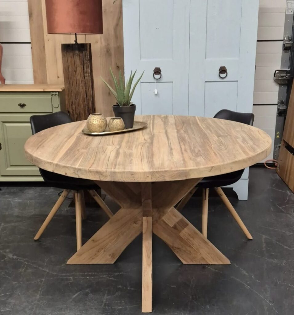 Sjoege maakt tafels met karakter: stevige houten bladen, vaak gecombineerd met een stalen onderstel. Ook mogelijk met ander model poot dan u op de foto ziet. Zie hiervoor de rubriek metaalwerk.
