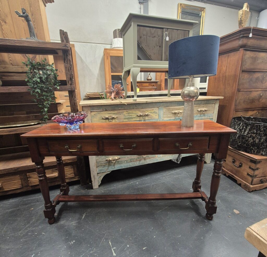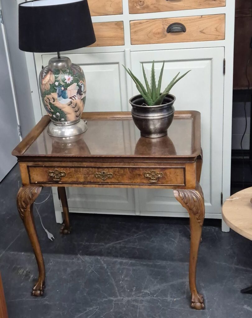 Deze klassieke Queen Anne-sidetable is een sierlijk staaltje vakmanschap. Met zijn gebogen poten, verfijnde afwerking en tijdloze charme voegt hij direct klasse toe aan elke hal, woonkamer of slaapkamer.